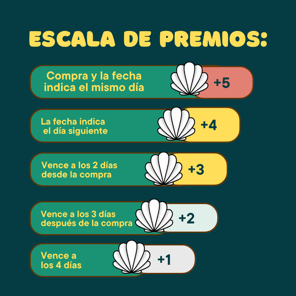 Cuanto más cerca esté el alimento de su fecha límite, más Ostras acumulas y más rápido crece tu score Ostras, lo que te permite acceder a más premios y beneficios.